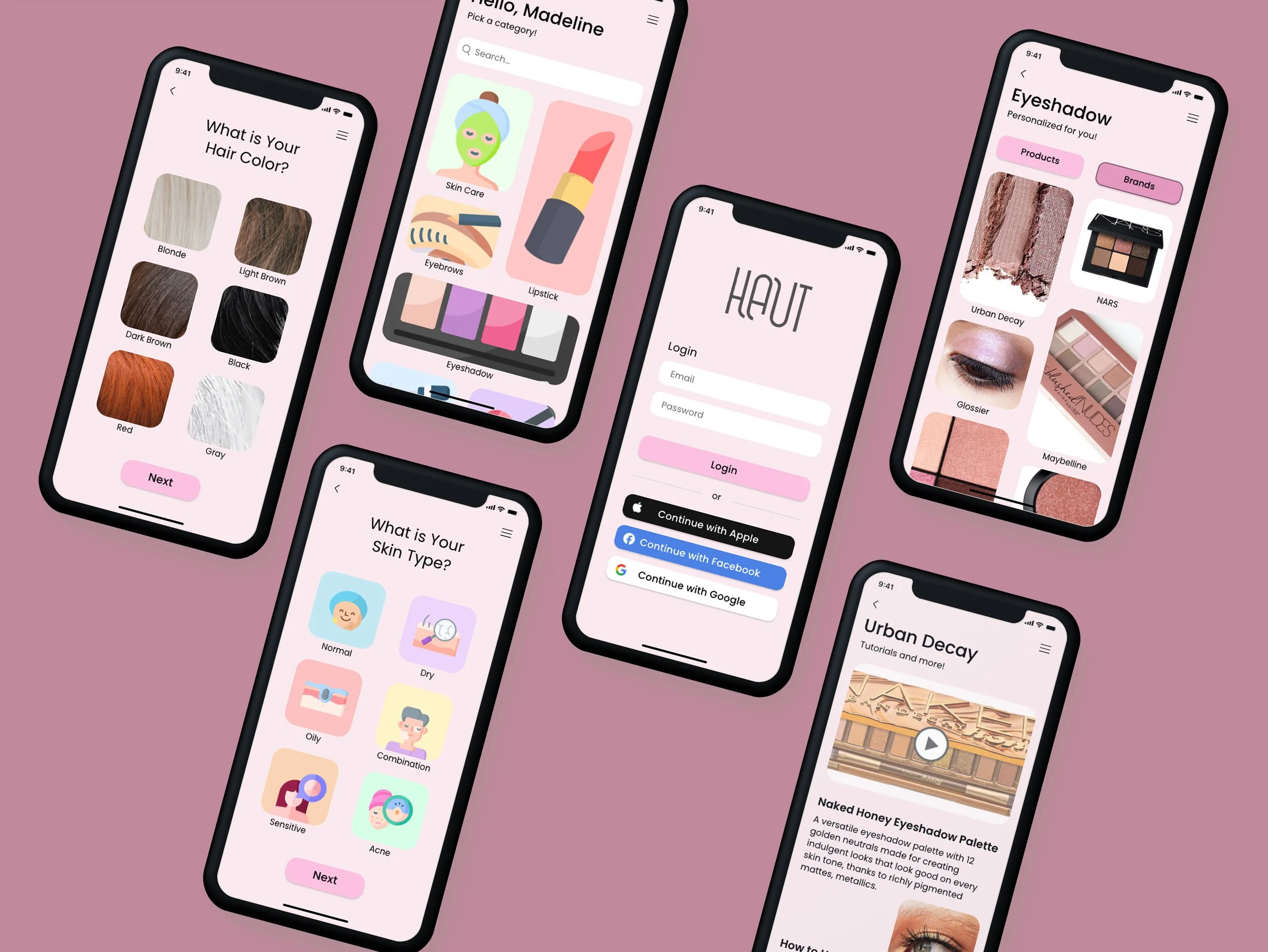 HAUT is a mobile app designed to match users with the best makeup products and brands based on their personal preferences.
